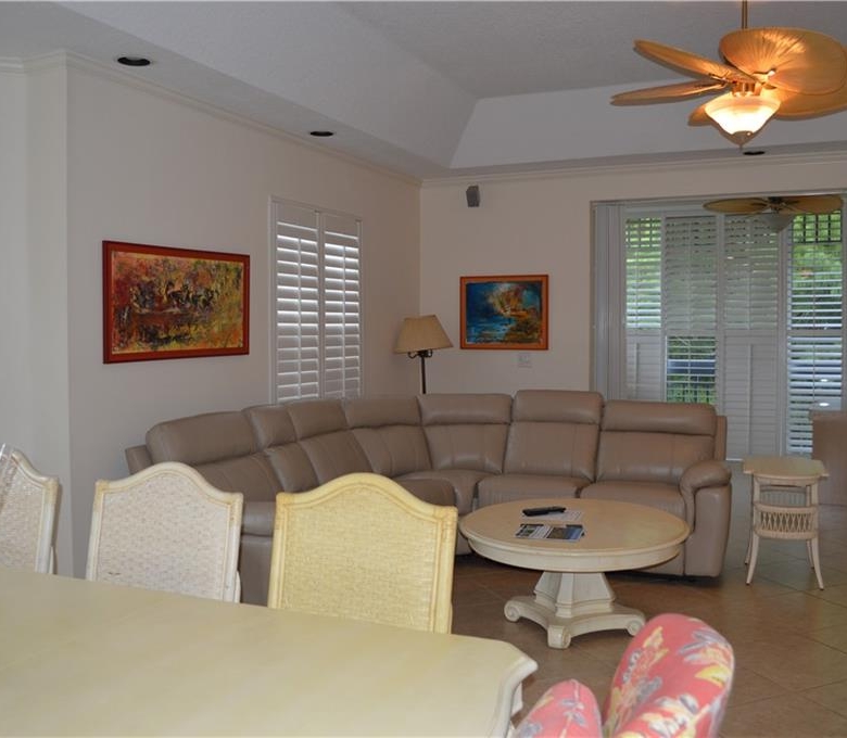 Available mid November 2020. 3 months minimum as of January 2021. Spacious second floor condo with private stairway that leads to the entrance of the home. Outside storage closet and balcony available near the entrance- perfect for sports equipment. Upon entrance into the villa, the 2 guest bedrooms are in the front of the home and the master bedroom is located in the rear of the home. The master bedroom is spacious with king bed, plenty of clothing storage, vaulted ceilings, large walk-in closet, and a bathroom featuring a shower and a separate jacuzzi bath tub. The living area is open with a leather sofa sectional sofa for gatherings, a dining room table with plenty of seating, a sun room with a large desk that overlooks a wooded preserve area, eating space in the kitchen, and a separate laundry room. Also listed for sale.