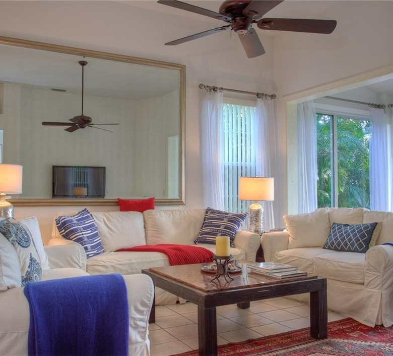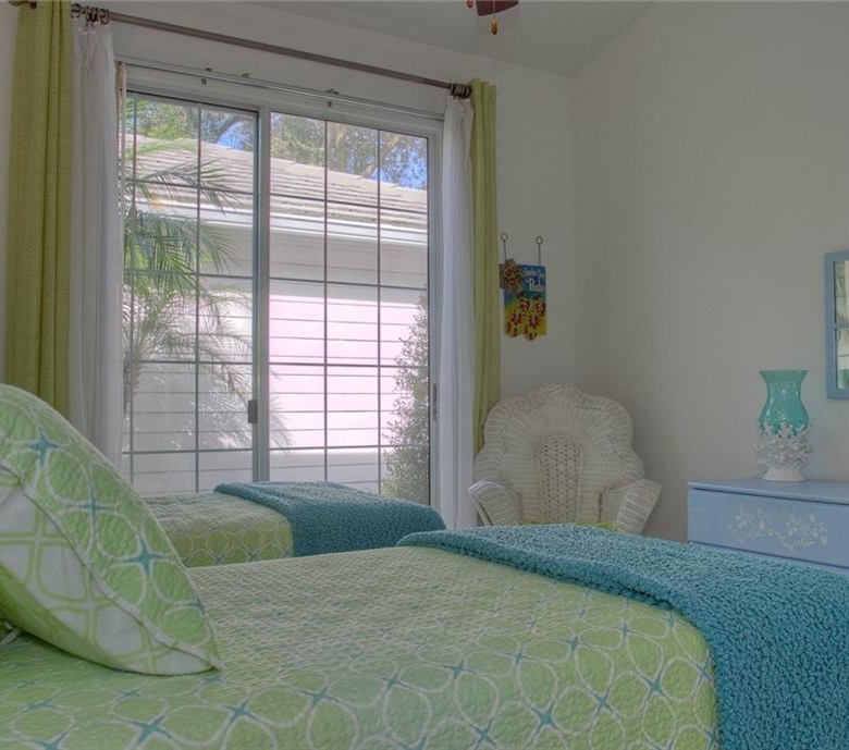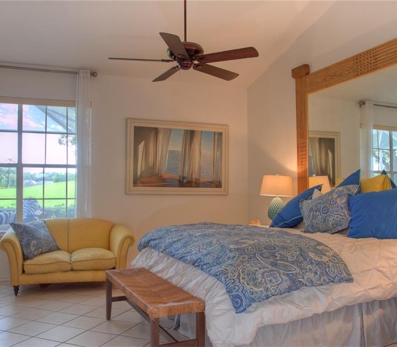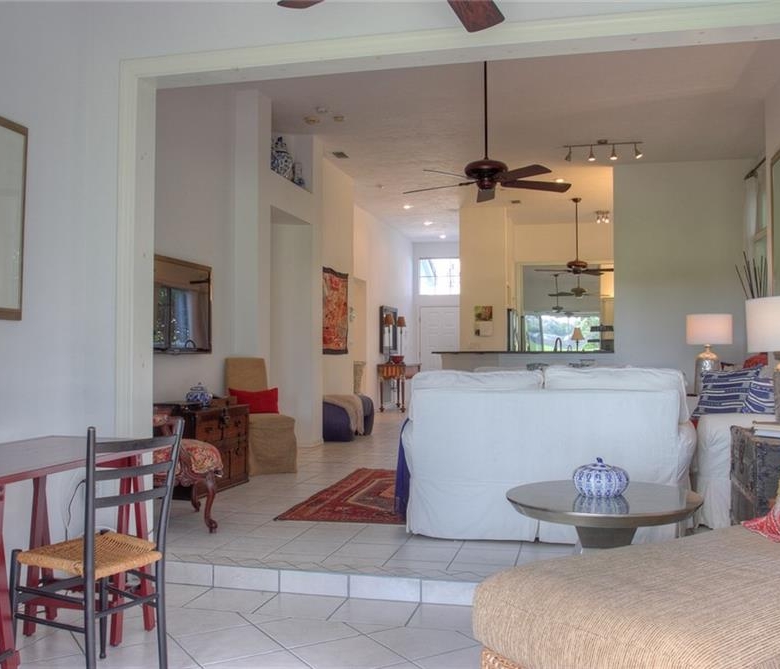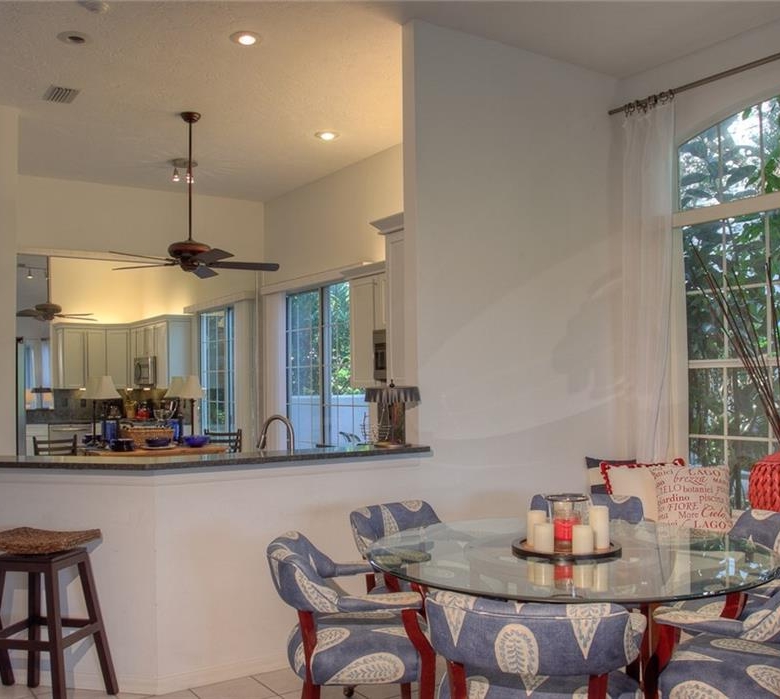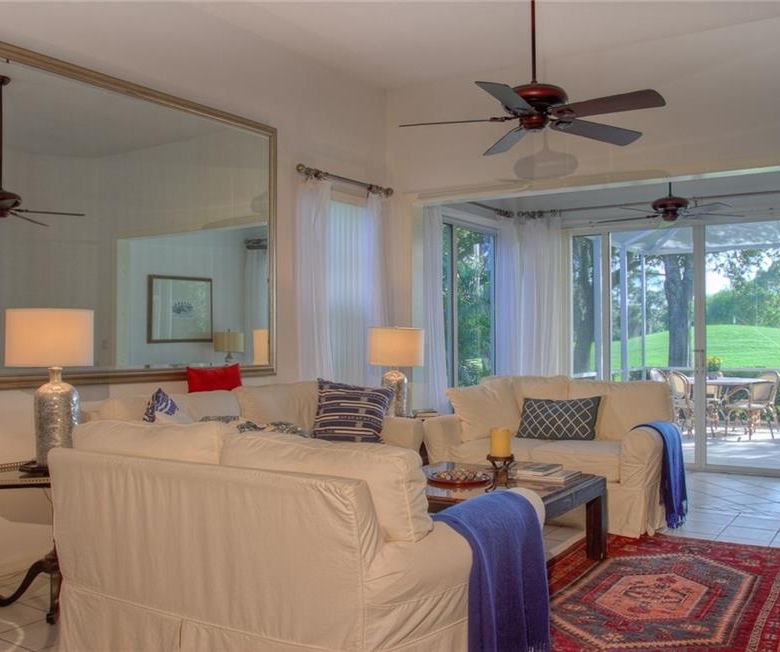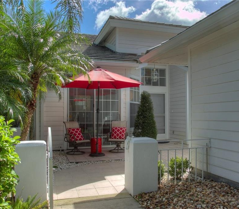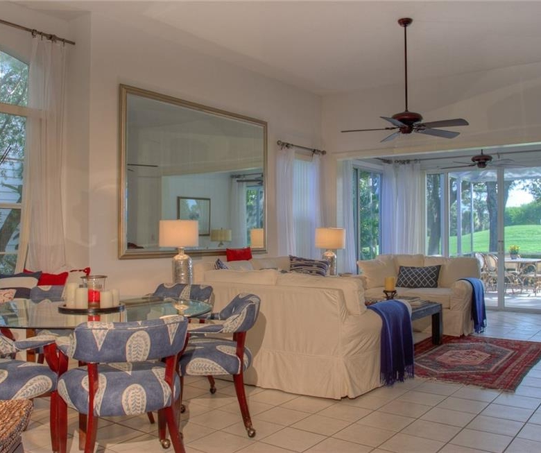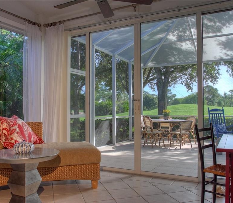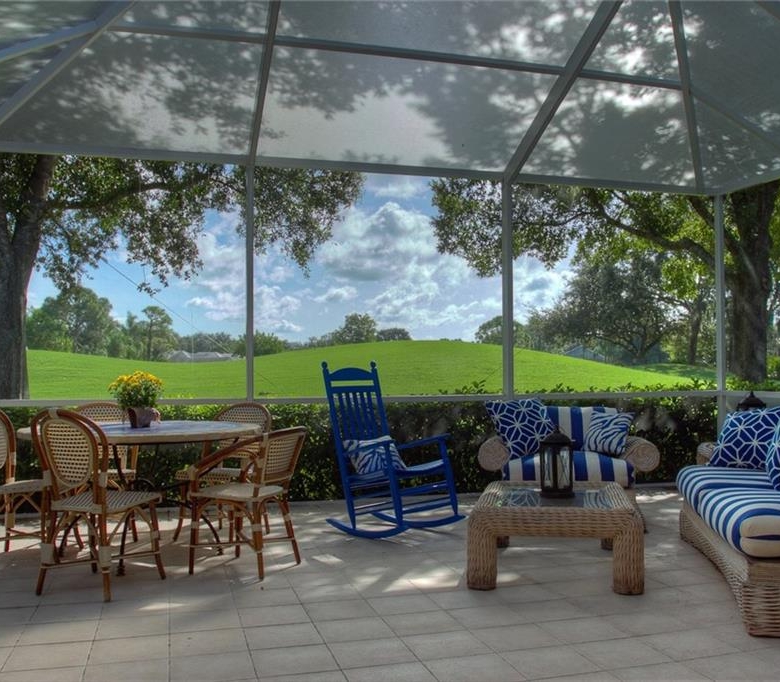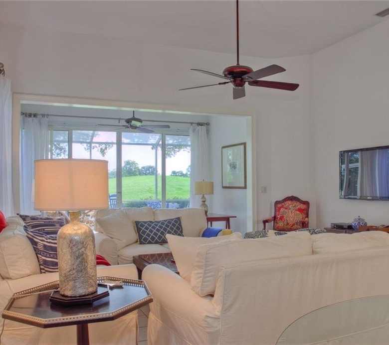 Beautiful decorating in this large villa with expansive views over the University Park golf course. All tile floors and large screened lanai overlooking the greens and sand trap. High end decorating in all the rooms, all tastefully coordinated. The villa has a king sized bed in the master bedroom, in the second bedroom there are two twin sized beds, then in the office/den there is a couch with a queen sized fold out bed. Off the kitchen there is a barbeque patio for ease of entertaining. The detached garage features installed cabinets for extra storage. Great location for your vacation on the exquisite golf course of University Park. UNIVERSITY PARK/ SEASONAL VILLA /SARASOTA/ BRADENTON FLORIDA