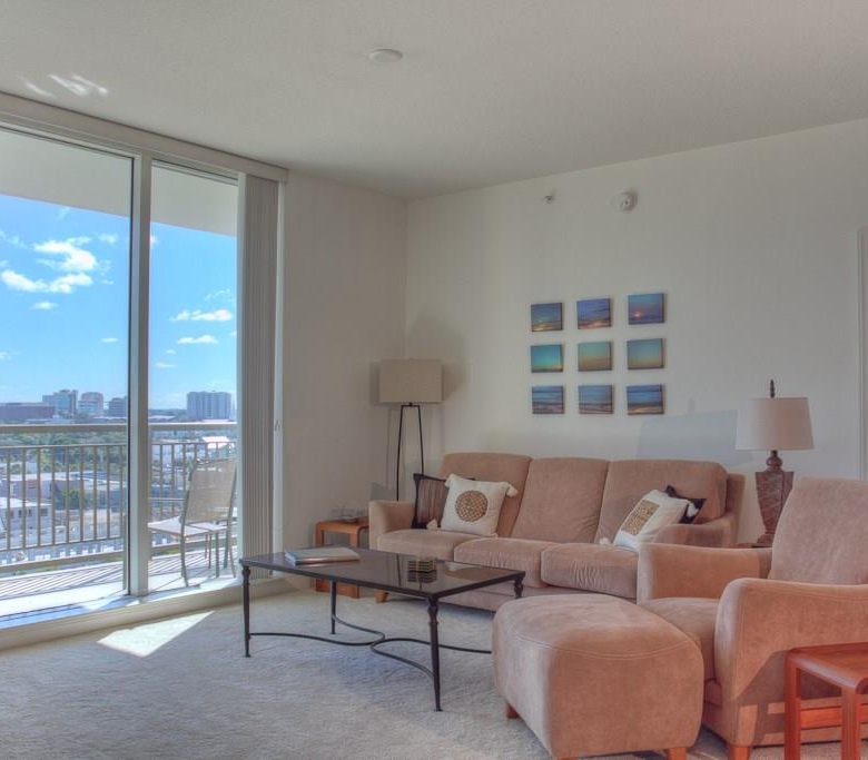 DOWNTOWN ALINARI TURNKEY FURNISHED. RESORT style living at the ALANARI. Newly Furnished and freshly painted and new carpet. Sunny open floor plan with large master suite with a king size bed and 40″ Flat screen TV, large walk in closet and master bathroom with garden tub and walk in shower. Living room/ dining room features a 50″ flat screen TV and a private terrace that overlooks the beautiful Community Pool and expansive cityscape vistas. Perfect kitchen with breakfast hi-bar, granite counter tops. Bedroom two features a queen size bed. Spacious laundry room. One car garage in secure parking garage and plenty of guest parking. Located on the 10th floor in the south tower within close proximity to the elevator. The Alinari provides every amenity you could need: a 24 hour concierge and security, meeting rooms, library, world class fitness center, heated pool with spa and waterfalls, wine room, media room, in-house movie theater, billiards, zen garden and outdoor grilling area. Walk to downtown and enjoy the restaurants, theater, opera, shopping and more. Walk along the water way and enjoy Sarasota’s sunsets. Cross the bridge to St Armands Circle for shopping, restaurants, and the beach. Three month minimum stay. Monthly rate for May through November is $2500.